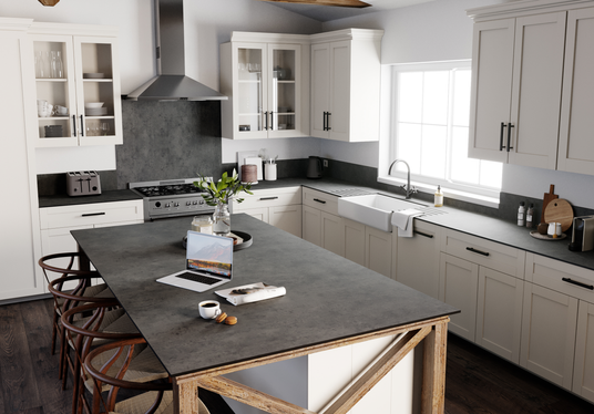 A dark urban stone design that creates depth and interest thought the surface details.